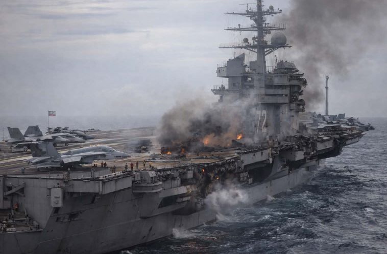 Even without a direct hit, the environment surrounding the carrier has grown increasingly volatile. Warships maneuver carefully. Fighter jets launch and land with precision. Every radar signal is analyzed, every movement tracked. The tension is constant, invisible, and unrelenting.